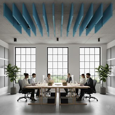 CLARITY BAFFLES è la soluzione ideale per il trattamento acustico di grandi volumi. Grazie all'installazione verticale a soffitto e al rivestimento in pregiato tessuto Trevira, offre il massimo assorbimento con un impatto estetico di alto livello.