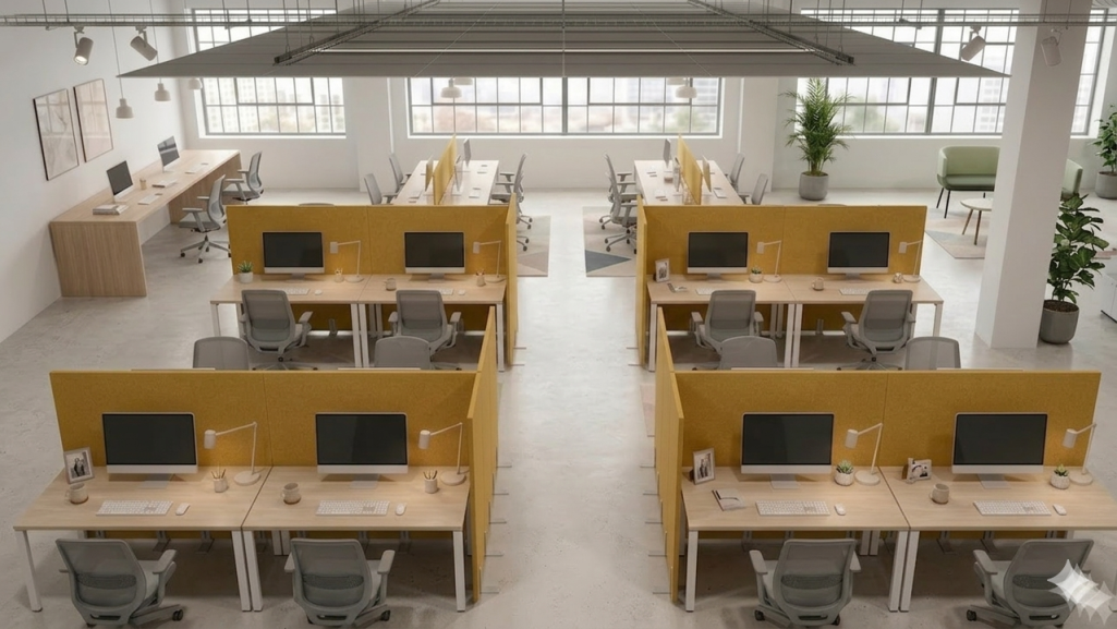Rumore di Fondo: Contribuisce significativamente alla riduzione del rumore di fondo e del riverbero, migliorando l'intelligibilità del parlato e la concentrazione negli ambienti open space.